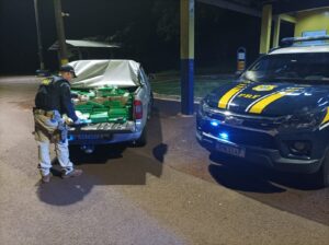 Em Céu Azul, na BR-277, na noite de sábado (20), os policiais rodoviários federais abordaram uma caminhonete e no compartimento de carga encontraram 265 quilos de maconha. O condutor afirmou que pegou o veículo em Foz do Iguaçu e levaria até Santa Tereza do Oeste. A caminhonete é produto de roubo/furto ocorrido no último dia 03 em Serranópolis do Iguaçu.