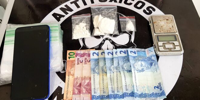 Na casa foram encontradas 32 gramas de cocaína fracionadas, prontas para venda. Além disso, foram apreendidas uma balança de precisão, embalagens e um celular.