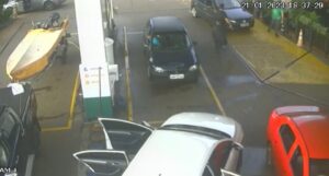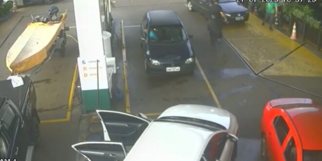 Um câmera de segurança registrou o exato momento em que um homem foi surpreendido por criminosos fortemente armados e morto após ser atingido por vários tiros durante o início da noite deste sábado (21), em Apucarana, no Norte do Paraná. O homem chegou a ter a cabeça “estourada” com disparos de uma arma calibre 12.