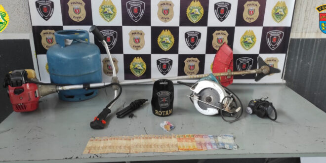 No dia 20/01, Policiais do 4º Batalhão, em patrulhamento pelo Jardim Alvorada, visualizam o momento em que dois homens comercializam drogas no local. Em abordagem aos mesmos foi encontrado crack e dinheiro trocado. Em busca continuada pelo terreno, foi localizado embaixo de telhas mais quantidade da droga além de algumas ferramentas e objetos sem procedência. Os envolvidos, a droga, o dinheiro e os objetos foram encaminhados à delegacia para medidas cabíveis.