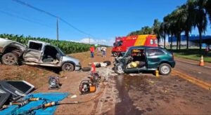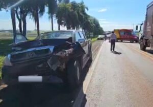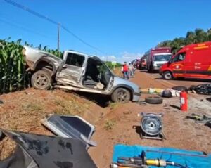 A colisão envolveu duas caminhonetas, uma Chevrolet S10 e uma Hilux, além de um VW/Gol. As equipes de socorro ainda permanecem no local fazendo o atendimento.