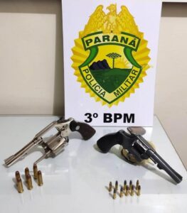 Em data de 23 de outubro, por volta das 20h50min, após denúncias, a equipe policial militar deslocou até a uma área rural do município de Honório Serpa-PR, onde realizou a abordagem ao veículo Peugeot 206, e identificou o condutor (42) e os 4 passageiros, e após buscas no automóvel foi logrado êxito na localização de um revólver cal. 22, com 10 munições intactas, e outro revólver cal. 38, com 6 munições intactas.