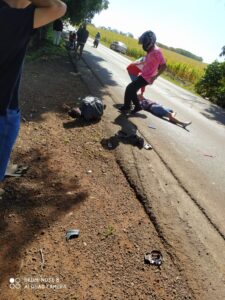 Os ocupantes do carro nada sofreram. Com a batida, a moto saiu do outro lado da pista, e os ocupantes, Brayan Gabriel Mendes Pelatti, de 19 anos, e R. P. N., de 13 anos, caíram no asfalto, ficando com várias escoriações no corpo.