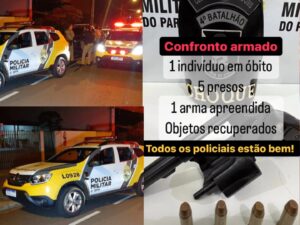 5 suspeitos foram presos. O corpo do criminoso morto foi recolhido pelo Instituto Médico legal de Maringá, ele não portava documentos. Um revólver foi apreedido.