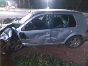 Com a batida, o motorista da Parati também perdeu o controle de direção, rodou na via e se envolveu em batida frontal com o Golf.