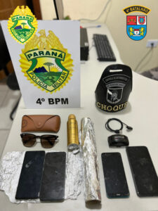 Nesta quinta (26), por volta das 21h, Após receber informações de uma equipe que prestava atendimento a uma situação de roubo agravado com uso de arma branca, ocorrido na área central de Maringá, e que um dos aparelhos celulares roubados estaria sendo rastreado pela vítima, policiais militares realizando patrulhamento tático na cidade de Sarandi realizaram abordagem a um imóvel, onde um dos autores foi localizado, bem como alguns objetos roubados, dentre eles dois aparelhos celulares que estavam embrulhados em papel alumínio, na tentativa de ocultar o possível rastreamento. O segundo autor, que era menor de idade, foi devidamente identificado, mas não foi localizado no momento da abordagem, porém durante a confecção do boletim de ocorrência se apresentou na delegacia juntamente com sua genitora. Diante dos fatos, os autores do roubo, bem como objetos recuperados foram conduzidos e apresentados ao delegado de plantão na delegacia de Sarandi.