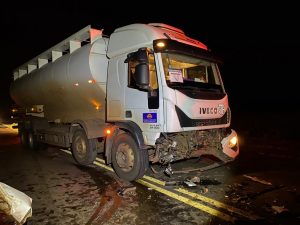 Descrição: Conforme dados colhidos no local e declaração do condutor masculino O.A de 45 anos do caminhão Iveco/Tracyor, placa de Munhoz de Mello/PR, relatou que trafegava