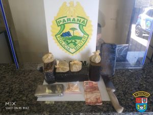 Na tarde de segunda-feira (25/04), por volta das 12h, policiais militares do 4º Batalhão, receberam a informação de que em um determinado estabelecimento comercial no Jardim Nova Aliança, em Sarandi, estava ocorrendo comércio de drogas. Assim sendo, os militares se deslocaram até o referido local e realizaram abordagem a um homem (20 anos), que se encontrava em atitude suspeita pelas imediações. Durante as buscas os militares lograram êxito em localizar 908g (novecentos e oito gramas) de substância análoga à maconha e 14,9g (quatorze gramas e novecentos miligramas) de substância análoga ao crack sob sua posse. Após diligências, foi localizado, ainda, R$ 10,00 (dez reais) em espécie e 1 (uma) balança de precisão de sua propriedade.