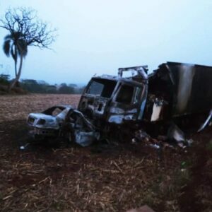 Com impacto da colisão veiculos pegaram fogo e condutor do veículo Siena veio a óbito no local.