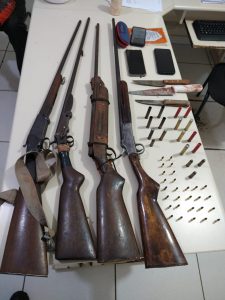 04 espingardas apreendidas, sendo 03 de calibre 36, e uma espingarda modificada para uso se munição 22;