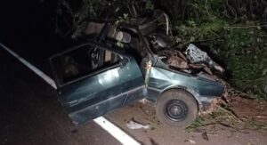 Com isso acabou batendo no Uno e também na traseira da carreta. Os dois automóveis foram parar fora da pista, causando a morte instantânea do motorista do Uno.