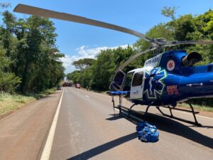 E após o atendimento foi conduzido de Helicóptero ao hospital Bom Samaritano em Maringa