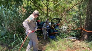 O Resgate foi realizado pelas equipes dos bombeiros de campo Mourão, helicóptero do Samu e polícia rodoviária.