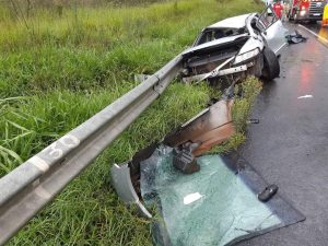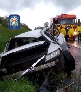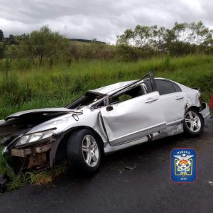 A PRF atendeu, nesta quinta-feira (27), por volta da 15h10, na BR 376, Km 523,4, um grave acidente do tipo saída de pista seguido de capotamento e colisão contra objeto estático (defensa metálica) do veículo Honda/Civic, placa de Centenário do Sul/PR.