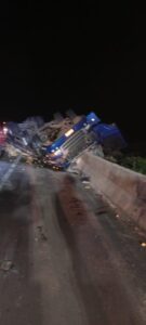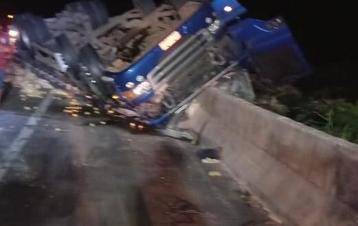 A equipe do Corpo de Bombeiros SIATE e ABTR da cidade de Jaguariaíva foram acionados por volta da 1h30min desta terça-feira, 28 de fevereiro, para deslocarem até a PR-151 entre as cidades de Jaguariaíva e Sengés, onde teria ocorrido um tombamento de caminhão carregado com batatas na ponte do Rio Cajuru.
