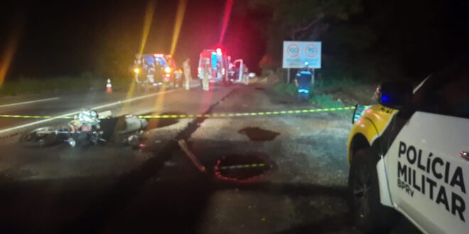 Conforme vestígios encontrados no local, trafegava à motocicleta Honda/CG 160 (placa de Maringá-PR) pela rodovia PR-323 no sentido de Paiçandu para Doutor