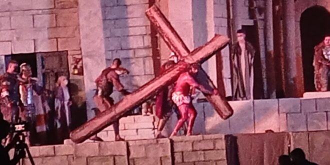 Para a encenação foi montado uma grande estrutura, com iluminação. Os participantes da peça realizaram treinamentos para a apresentação durante dias.