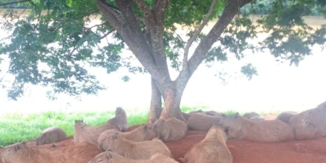 O objeto foi cortado pela equipe. O Parque do Lago vem sendo tomado pelas capivaras que se reproduzem em grande quantidade, o que tem gerado reclamação de muitas pessoas que fazem caminhada no local.