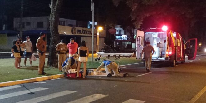 Uma jovem de 19 anos, acabou ficando ferida depois de ser atropelada. O acidente aconteceu no entroncamento das avenidas JK com a Cerro Azul, próximo ao Teatro Reviver Magó, em Maringá.