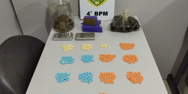 Policiais militares de Maringá, durante operação saturação, na cidade de Sarandi, prendeu um casal, na posse de Haxixe, maconha, comprimidos de Ecstasy e balanças de precisão, além de um veículo com alerta de furto e placas adulteradas.