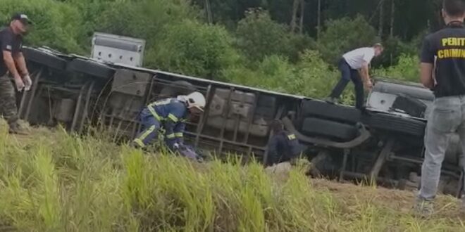 A Polícia Rodoviária Federal (PRF) informou que ainda há corpos de vítimas no ônibus que tombou na BR-277, em Fernandes Pinheiro, no Sudeste do Paraná, na madrugada desta terça-feira (31).