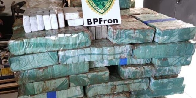 No local foram encontrados 115 volumes de substância análoga a maconha, pesando aproximadamente 1.044,5 kg, 30 coronhas para fuzil e 11 carregadores para fuzil.