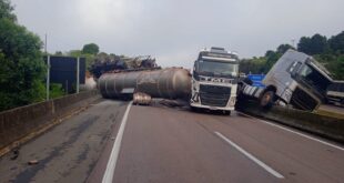 Ocorreu um acidente envolvendo caminhões na BR 277, KM 138,5, em frente ao Posto da PRF de São Luís do Purunã. Sem previsão para liberação… Há vazamento da carga de Álcool Etílico. Informação e foto PRF INFORMOU EQUIPE ATENTO A REDE
