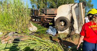 Tombamento de caminhão secundário a colisão frontal com Fiat toro próximo a cidade de colorado Condutor caminhão óbito no local. Condutor do auto encaminhado com lesões leves. Defesa civil com caminhão pipa no local , vazamento de combustível controlado .