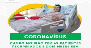 Na tarde da última terça-feira, 09.06, mais um paciente, morador de Campo Mourão, hospitalizado por Coronavírus recebeu alta da UTI-Covid. Até esta data, foram 49 pessoas recuperadas da doença. O último óbito de paciente do município ocorreu há dois meses. FONTE: Prefeitura de campo Mourão