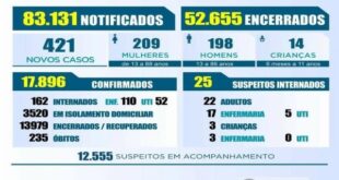 Olha 536 recorde registrou em Maringá !!! A Secretaria de Saúde da Prefeitura de Maringá registrou 536 casos e 5 óbitos por coronavírus nesta terça, 8 de dezembro. Veja o perfil das vítimas: Homem, 51 anos. Faleceu em 04/12/2020. Homem, 45 anos. Faleceu em 03/12/2020. Homem, 91 anos. Faleceu em …