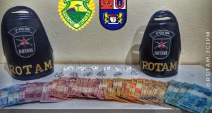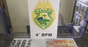 Leia mais »POLICIAIS MILITARES DA 3ª CIPM ENCAMINHAM INDIVÍDUO POR TRÁFICO DROGAS EM NOVA LONDRINA. Em data de 12 de julho de 2022, no período noturno, a Equipe Policial da 3ª Companhia Independente de Polícia Militar (3ª CIPM) Patrulha Rural e ROTAM encaminharam um indivíduo por Tráfico de Drogas em Nova Londrina. As equipes realizavam Patrulhamento Ostensivo na região central, quando avistou um indivíduo em frente a uma residência que ao visualizar a Polícia Militar apreendeu fuga. Diante do fato, foi realizado o contato com outra equipe que estava nas imediações, logrando êxito em localizarem o indivíduo e, dado voz de abordagem, localizaram com este um invólucro contendo 36 pedras de substância análoga a crack e em outro recipiente 28 invólucros de substância análoga a cocaína, embaladas e prontas para a comercialização, além de R$ 916,00 (Novecentos e Dezesseis Reais) em dinheiro. Diante do fato, o indivíduo, masculino de 21 anos, juntamente com os produtos apreendidos foram encaminhados para a 21ª Delegacia de Polícia Civil de Nova Londrina para providências cabíveis. RESULTADOS: 01 Indivíduo encaminhado. 36 pedras de substância análoga a crack apreendidas. 28 invólucros de substância análoga a cocaína apreendidos. R$ 916,00 (Novecentos e Dezesseis Reais) apreendidos. Disque Denúncia: 181 POLÍCIA MILITAR DO PARANÁ “Nós fazemos a diferença.” Comunicação Social – 3ª CIPM